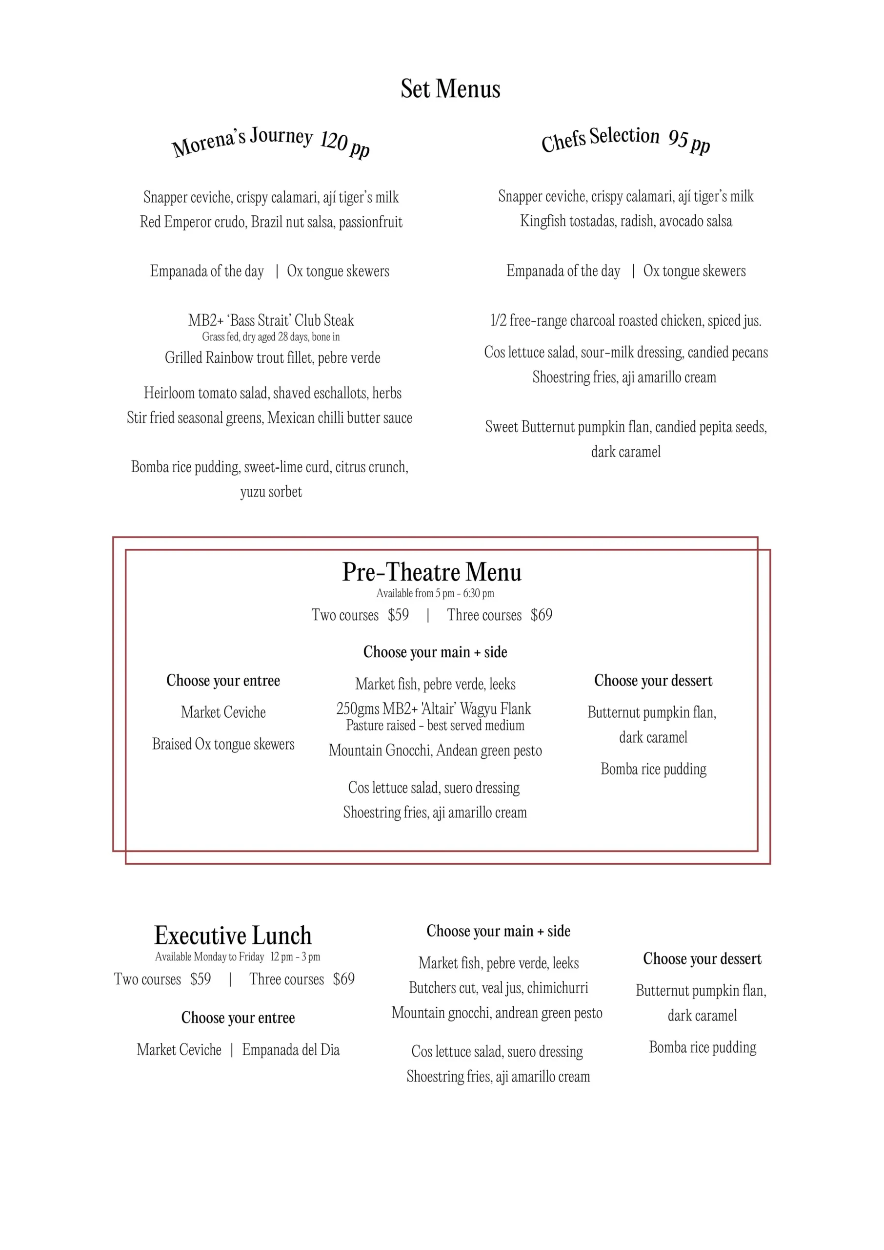 Explore theflavours and traditions ofLatin America through one ofour set menus.